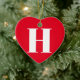 Modern red and white custom monogram initial typography elegant personalized heart Christmas Ceramic Ornament. Available in different shapes and materials.