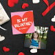 This modern and sweet Valentine's Day classroom photo card features a bright pink background with a large red heart on the front. The greeting on the front says "Be My Valentine?" The back of the card has full frame square photo, which can also be removed if desired. This small size is perfect for classroom Valentine exchanges!