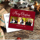 Modern Red Merry Christmas 3 Photo Year Holiday Postcard