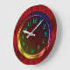 Modern Red Metallic, Rainbow Neon Glow Large Clock