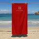 Custom Modern Red Monogram Beach Towel.