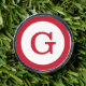 Stylish modern golf divot tool features a cool, simple red monogram on a white circle with a red ring border. Add your initial in the sidebar. A great custom gift for golfers.