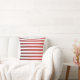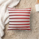 This modern pillow features a red ombre and white stripes on the front side and dark red gradient on the back.
