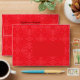 This red tile patterned envelope is printed inside and out with a modern kaleidoscope print and has a customizable return address printed on the outer flap on the back. The front has a plain teal area to write the recipient's address on.