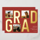 Celebrate your graduation with this modern photo typography red graduation foil invitation. This sleek design features luxurious foil typography with the word "GRAD" prominently displayed. The invitation allows you to showcase three of your favorite photos on the front, creating a unique and personalized keepsake. Customize with your name, school, and graduation year on the back to share your achievement with friends and family. Perfect for high school or college graduates, this invitation beautifully captures your milestone moment with a stylish red backdrop.