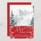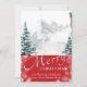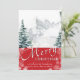 Modern Red Pine Tree Snowflakes Bokeh Chic Script Holiday Card