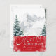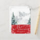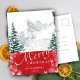 Modern Red Pine Tree Snowflakes Bokeh Chic Script Holiday Postcard