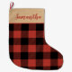 Modern Red Plaid & Name Large Christmas Stocking
