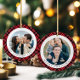 Modern Red Plaid Photo Christmas Ceramic Ornament