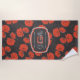 Modern Red Poppy Pattern Monogram on Slate Gray Beach Towel