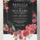 Modern Red Roses Floral Black Wedding All In One Invitation