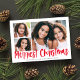 Modern Red Script Merriest Christmas 3 Photo Holiday Card