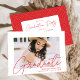 Invite guests to celebrate the graduation with our modern photo graduation party invites. The trendy graduation party invites feature the graduate's photo with "Graduate" in a red modern calligraphy script overlay. Personalize the front of the invites by adding the graduate's name, school name, and graduation year. The invite reverses to display your graduation party details and a trendy red and white dotted geometric pattern.