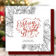 Modern Red Script Pine Bough Minimalist Floral Holiday Card
