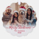 Modern Cute Minimalist Red Script 2 Photo Merry Christmas Script Holiday Ornament Card. This festive, simple minimalist, whimsical two photo holiday greeting card template features Family Name, Year and a „Merry Christmas” greeting text which is written in a hand lettered swirly swash-tail font red calligraphy script photo overlay on white gradient. Pretty greeting card for your family and friends in Christmas Holiday season.