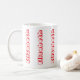 Make a statement with this sleek, minimalist personalized coffee mug featuring your name in a bold, vertical design. The dynamic text creates a modern look against the clean white background, with the name repeated three times for visual impact. Perfect for those who appreciate contemporary design with a personal touch, this mug transforms an everyday coffee cup into a stylish, customized piece. Whether for yourself or as a thoughtful gift, it's a unique way to claim your daily caffeine companion.