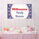 Wonderful modern banner to display at your family reunion party event. Red, white and blue patriotic color theme with your monogrammed name. Display at park picnic, fellowship hall, backyard or other place of reunion. Simple and modern!