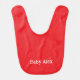 modern red and white custom script baby bib, elegant red and white baby bib.