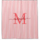 Modern Red & White Stripes Monogram Name Shower Curtain