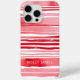 Modern Red White Stripes Geometric Watercolor Pattern Personalized Name iPhone 15 Pro Max Cases features your personalized name, monogram or initals in a simple script typography on a modern red and white watercolor stripe background. Perfect gift for her for birthday, mom for Mother's Day, sister or bestie for Christmas and holidays. Designed by ©Evco Studio www.zazzle.com/store/evcostudio