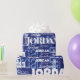 This modern repeating name blue and white font pattern personalized wrapping paper features their name or family name in a repeating word pattern with different trendy fonts on a dark blue background. Your recipient will love to see their name gracing the front of their gifts! Order a roll for each family member's special birthday!