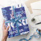 Modern Repeating Name Blue White Font Pattern Wrapping Paper