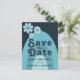 Modern Retro 70s Bold Blue Wedding Invitation Postcard