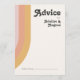 This modern retro 70's rainbow wedding advice card is perfect for your simple vintage orange, rose gold, and blush pink wedding. Designed with elements of a classic, colorful boho arch and groovy minimalist stripes. The design has a unique abstract tropical beach feel, great for any spring, summer, or fall wedding. The product is customizable, as the graphic is an SVG file, so feel free to change all the colors! Add your own artwork, photos, or graphics. If you have any questions about the design of this product, please feel free to reach out to us!