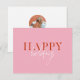 Modern Retro Bright Colorful Pink Script Photo Holiday Card