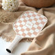 Introducing our modern retro tan beige chequered pattern monogram pickleball paddle – a perfect blend of style and performance for the discerning player. This paddle features a fun, nostalgic checkerboard design in blush pink tones, giving it a timeless retro feel with a modern twist. What's more, you can make it uniquely yours with a personalized monogram placed inside one of the checkerboard squares. Whether you're hitting the court for a competitive match or a casual game, this paddle offers a combination of playful design and high-quality craftsmanship to elevate your pickleball experience. Stand out and make a statement with this chic, customized paddle! Design by ©Moodthology Papery