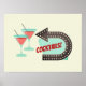 Retro inspired colors on this modern sign features cocktail glasses with large arrow and customizable text on light gray background. Great print for decor at your home bar or mixing station.