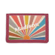 Introducing the Custom Name wallet with a Modern Retro Fun Vintage Rainbow Sun Burst Illustration. This wallet is a unique and personalized piece that features a vibrant and colorful sunburst design, reminiscent of the retro aesthetic of the 60s and 70s.
