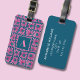Modern retro floral block print luggage tag with monogram/initial. Add your own contact details to the reverse side. Matching items available. Original art from artists own illustrations. Please use the message me button below for help with further customization and special requests. © Zoe Chapman Design