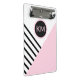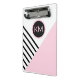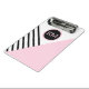 A contemporary pop art geometric pattern with a retro feel, this fashion forward clip board has angled black stripes and pink color block with a prominent matching round frame surrounding your monogram. Personalize the text template with your monogram. Other matching office products are available in this stylish design. It makes a wonderful personalized choice for home, school or business.