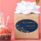 Modern Retro Gold Floral Navy Blue Wedding Oval Sticker