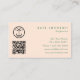A modern minimalist green and pink retro botanical leaves business card design incorporating your details, business logo and your QR Code. This elegant business card is ideal for all types of professions. A simple and professional way to introduce your business. Personalize your details to create your own unique business card. A perfect business card for anyone.