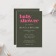 Modern Retro Groovy Pink and Green Baby Shower Invitation
