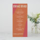 Abstract shapes retro vintage 70s style unique wedding menu card with bold typography in a vibrant trendy modern red, beige and orange terracotta chic color palette. +++++++ Please note that all the colors are changeable. ++++++++++++ Suitable for informal casual stylish contemporary weddings.