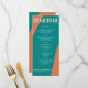 Abstract shapes retro vintage 70s style unique wedding menu card with bold typography in a vibrant trendy modern teal, beige tan and orange chic color palette. +++++++ Please note that all the colors are changeable. ++++++++++++ Suitable for informal casual stylish contemporary weddings.