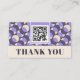 Enhance your customer experience with this elegant, mid-century modern thank you card. Featuring a chic lavender and cream geometric pattern, this card is designed to leave a lasting impression on your clients. The layout includes a dedicated space for a functional QR code, making it easy for customers to leave reviews, follow your social media, or reorder. Perfect for skincare specialists, boutiques, and small business owners looking for a sophisticated way to show appreciation. The pattern colors are 100% customizable to match your unique brand identity perfectly using the Zazzle design tool.