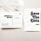 This modern retro lettering save the date invitation postcard is perfect for your unique, trendy simple vintage bohemian summer wedding. The lettering is a stylish black, chic 70's boho font giving this design classic minimal groovy hippie vibes. You can add your own graphics or pictures if you want to customize it. Please feel free to reach out with any questions regarding the product's design; we are happy to help!