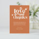 This Modern Retro Orange and Cream Wedding Thank You Cards are a great way to add a little more personalization to your big day. The color palette of orange and cream gives this an extra modern, yet vintage retro look. Say thank you with Love & Thanks.