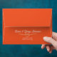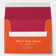 Simple, elegant, minimal, modern retro, bold magenta pink and orange 5x7 envelope for wedding invitations with return address and romantic gold rope heart.