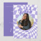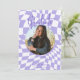 Modern Retro Purple & White Check Photo Graduation Invitation