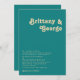 Having your Modern Retro Teal Traditional Wedding Invitation match the theme of your party is a great detail that your guests will appreciate. The thoughtfulness of a consistent party theme is often appreciated and can show your guests that you can host a cohesive event.