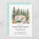 Modern Reunion Rustic Forest Simple Invitation featuring an adorable vintage camper all set up in the forest, surrounded with pine trees and a welcoming camp fire. All text on the invitation is easily changed to your reunion details and the back of the invitation is a lovely gingham pattern. What a lovely way to invite your family to your next reunion.