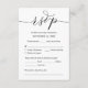 This is the beautiful Modern, Calligraphy, Romantic RSVP (Respond) Enclosure Card, in Black font, where you can edit, change colour and format it as per your design requirement, with meal options, reserved seats, number attending and song request option.