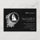 This design is a modern touch on a vintage idea. In the center there is a circle framing a bride and groom in white with a floral accent surrounding it and coming down on the left side. This elegant design has a customize-able background that you can set to any color you like. Simply click on the customize button, then the edit button and set the background color. This set has invitations, save the date cards, response cards, thank you cards, table number tent cards, envelope seals, wine labels, binders, and return address labels available. Use the envelope seal stickers for any of your DIY gifts - these are available in both large and small sizes! All elements are printed on our high quality products, they do not include any real gold, jewels, embossing, or other textile elements. All designs are copyright Noteable Expressions, Inc. All rights reserved.
