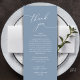 Introducing the perfect finishing touch to your wedding reception - our elegant romantic Wedding Thank You Place Setting Card, with card title "Thank you" ! Designed to express your heartfelt appreciation for each guest's presence on your special day, these cards are the ideal way to add a personal touch to your dinner tables. These place setting cards are easy to use - simply place one on top of each dinner card to create a beautiful Dusty Blue design theme.