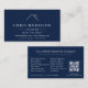 Modern Roofer Navy Blue Silver QR Code Business Card